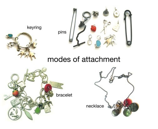 In order to address the question, Hazel has developed a series of 'charm' jewellery incorporating bracelets, necklaces, pins, or even keyrings. The charms were then given to a variety of different participants – from technophobes to technophiles, and from jewellery wearers to non–wearers – along with a pack that allowed them to log their responses. The participants themselves were allowed to choose the type of jewellery they received and how it would be worn, leading to a greater engagement with the pack and the project.