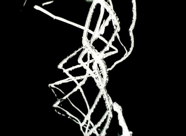 "In Free Radicals Len Lye put aside his interest in colour and concentrated on a stark, black and white use of the 'direct' method, by scratching on black leader. He has described the film as 'white ziggle–zag–splutter scratches ... in quite doodling fashion.' The film's title is a reference to modern physics –– 'free radicals' are particles of energy –– but the visual style is still reminiscent of tribal art."